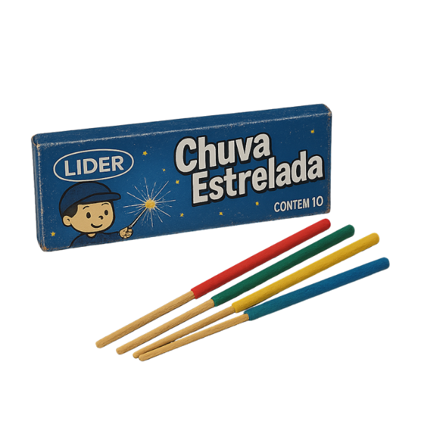 Bastão que projeta faíscas douradas intensas, criando um brilho quente e elegante sem ruído.