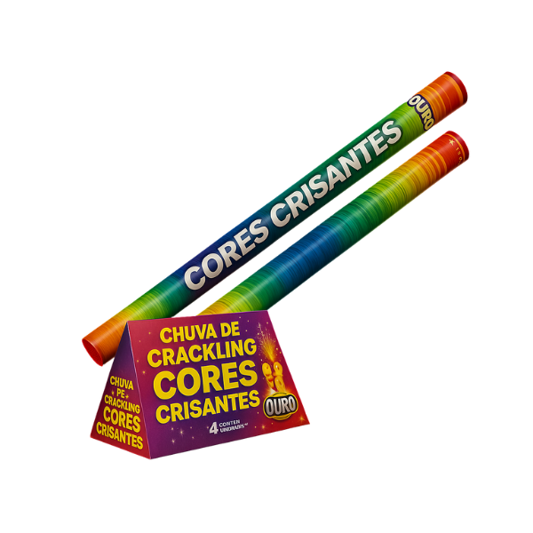 Bastão que combina faíscas douradas com estalinhos crepitantes, criando luz e som em um único efeito contínuo.