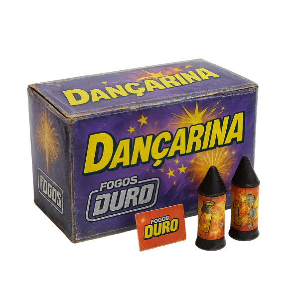 Disco giratório que roda no chão soltando faíscas multicoloridas e pequenos estalos — efeito 360° rápido e vibrante.
